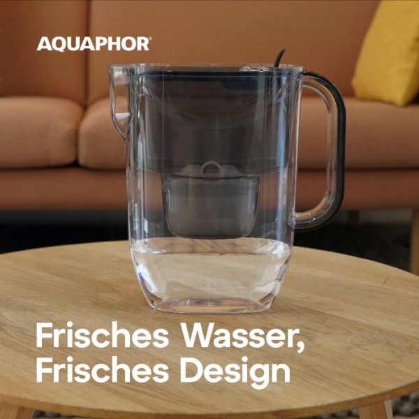 Die AQUAPHOR Fresh Filterkanne vereint Benutzerfreundlichkeit mit effektiver Wasseraufbereitung und sorgt für frisches und wohlschmeckendes Wasser für Ihren täglichen Bedarf. Der ergonomische Griff liegt gut in der Hand, während der Klappdeckel ein müheloses Nachfüllen ermöglicht. Eine batterielose Filteranzeige hilft, die Lebensdauer der Kartusche zu überwachen, ohne dass elektronische Komponenten erforderlich sind. Dank ihres kompakten Designs passt die Fresh-Kanne perfekt in den Kühlschrank und sorgt jederzeit für gekühltes, gereinigtes Wasser. Die AQUAPHOR Maxfor+ Kartusche ist im Lieferumfang der Fresh-Kanne enthalten und entfernt effektiv Aktivchlor, Schwermetalle wie Blei, Pestizide, Arzneimittel, Mikroplastik und viele weitere Schadstoffe, die häufig im Leitungswasser vorkommen. Die Fresh-Kanne ist komfortabel und praktisch konzipiert und bietet eine zuverlässige Lösung für sauberes, sicheres Trinkwasser.